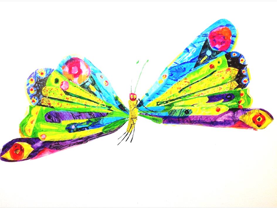 I love the sort of ‘stunned mullet’ look of both the caterpillar, that has devoured so much he is no longer hungry and is blown up like a balloon, and the butterfly!
