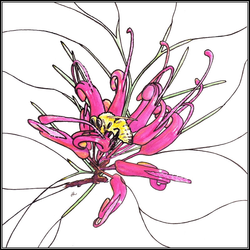A bush garden full of blooms is bound to attract bees and ours did – swarms of them. How wonderful that our environment supports so many bees even though some may be European Honey Bees, which are considered more deadly than spiders, rather than native ones! This one was determined to be the centre of attention on a Native Fuschia flower this Spring: