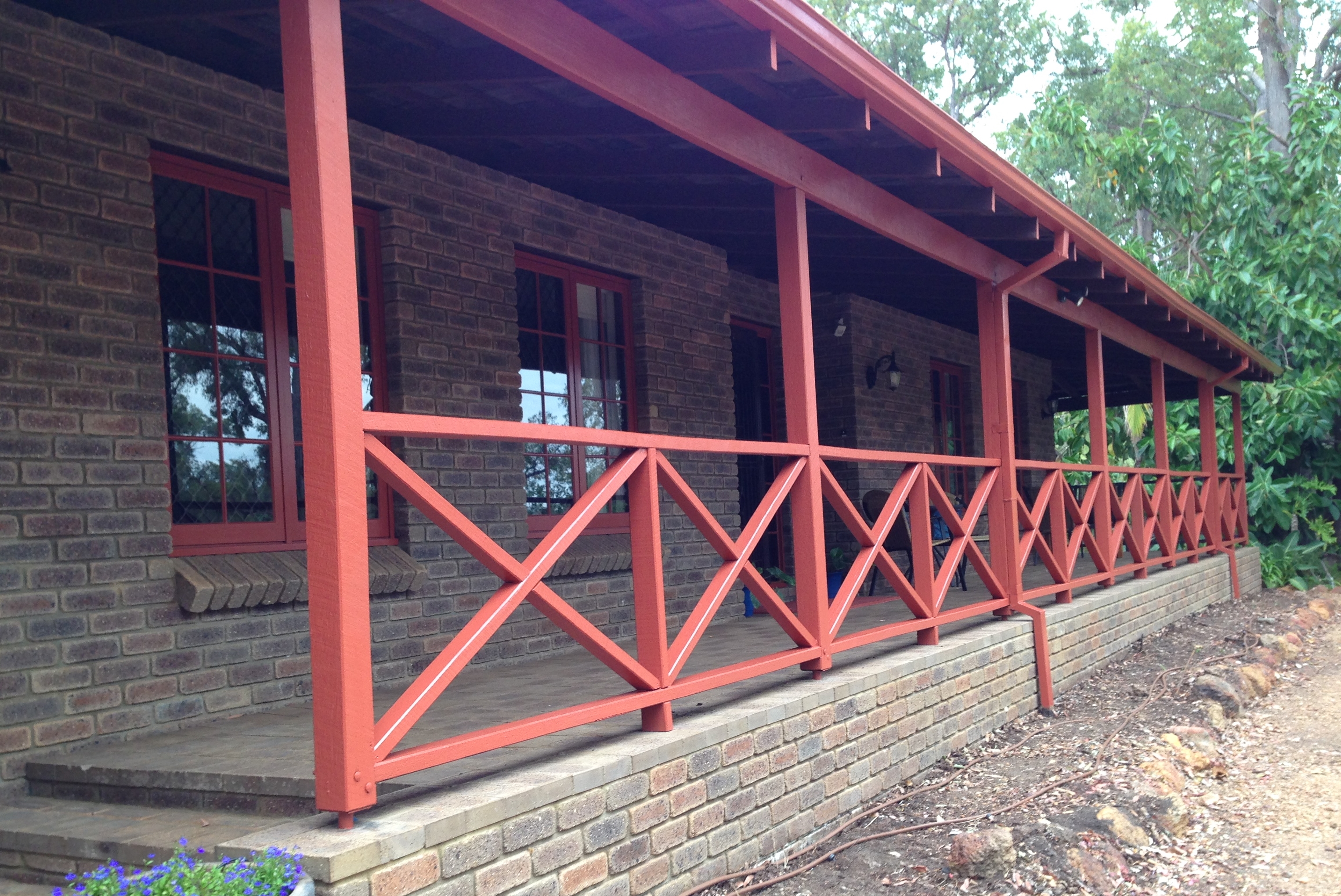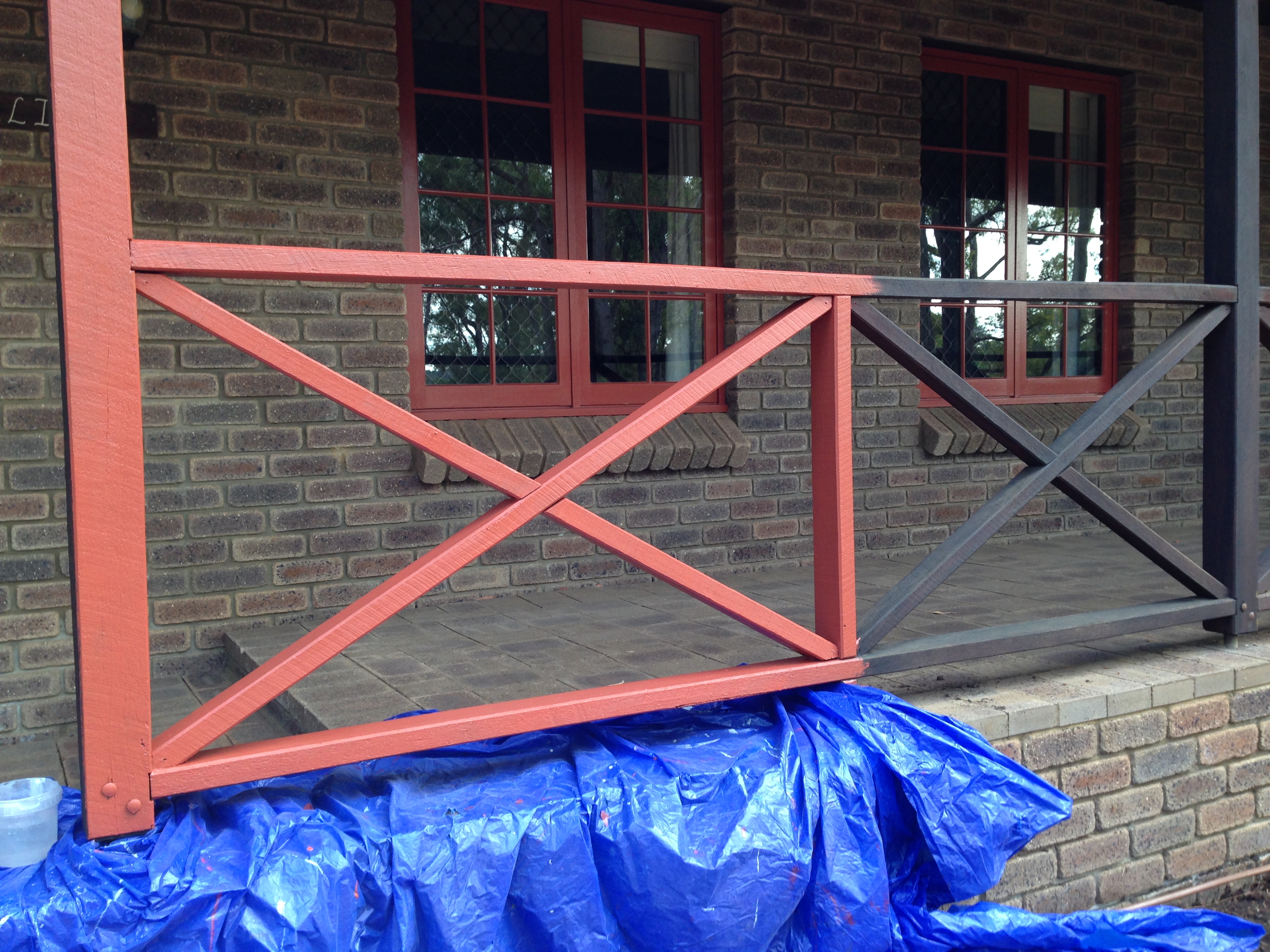 Yes, a definite improvement.  It took at least 60 hours of painting effort to put two coats on the front balustrade, roof bearer, downpipes and gutters.  Just as well we’re happy with the result.