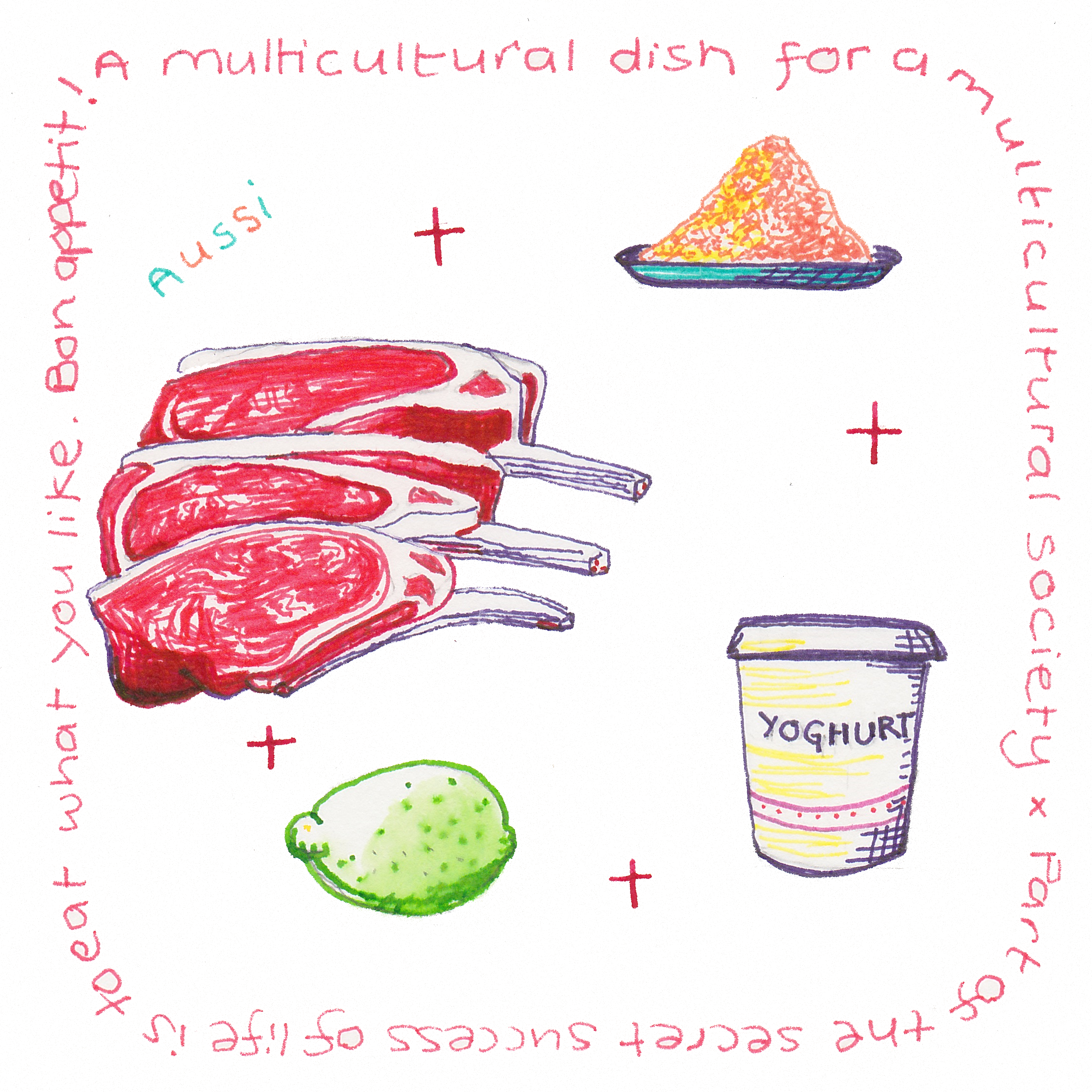 Sam Kekovich did more for the Australian lamb industry than anyone else I can think of.  Certainly more than my lamb recipe illustrations.  Sam’s ‘tongue in cheek’ diatribes were enjoyed by millions over a number of years.  Link to the 2006 ad here and you’ll understand my choice of title for this post!