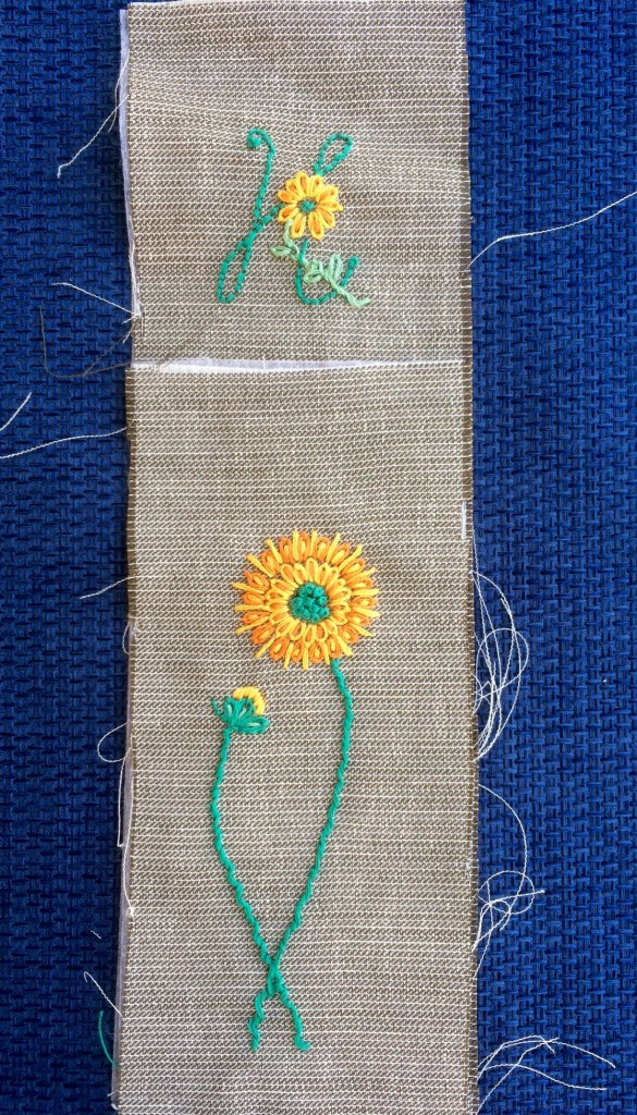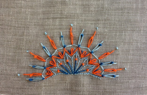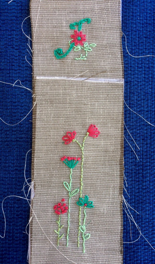 We’ve now been travelling for 3 weeks and I’ve so enjoyed taking floss for a walk that I’ve become addicted. I love creating the designs, deciding on colours, enjoying colour combinations, trying new stitches, making up stitches and overcoming happy accidents! It provides a wonderful mobile substitute for drawing and painting.
