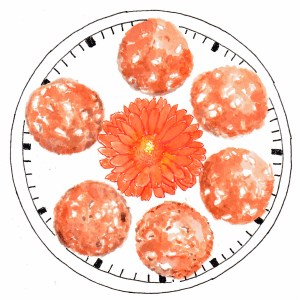 On day 20 I made a batch of mini muffins and wished I had some mini edible flowers to decorate them with. Marigolds would be too big! I also thought it’s be nice to put them on a clock plate – muffins anytime!