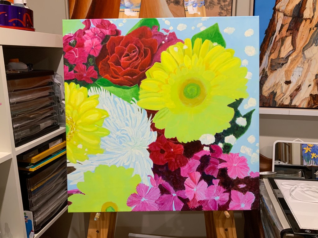 A bouquet of flowers given to us by friends was uplifting, thoughtful and inspirational.