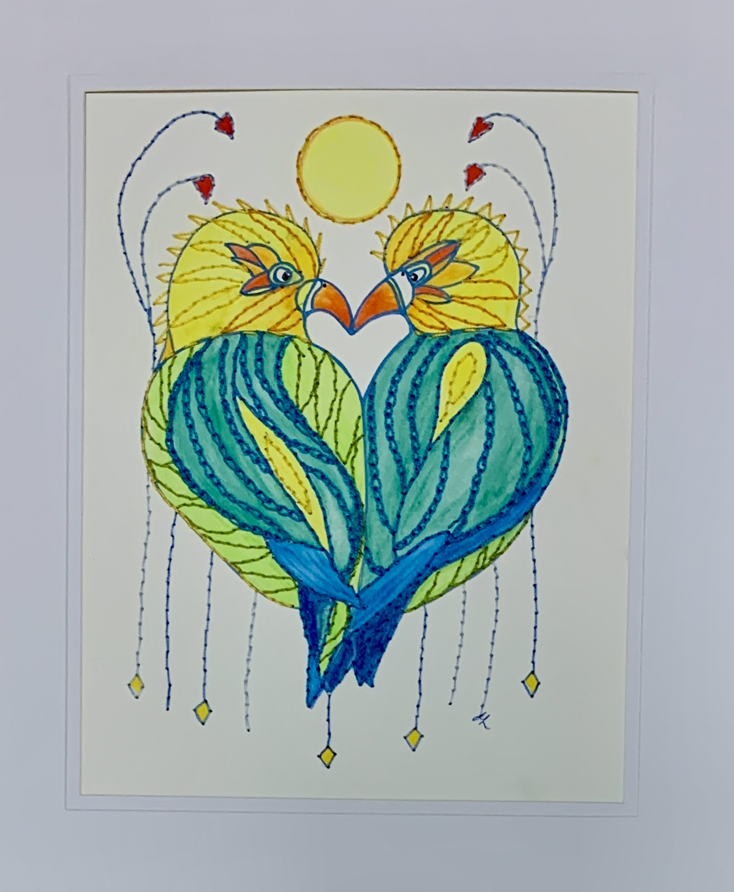 ‘This Is A Private Party’ – a mixed media piece, featuring Lovebirds, that I did during the 9 day Peel Open Studios event at Pinjarra Arts Hub At Edenvale with Murray Arts & Crafts Society. Sewing on paper really is ‘slow stitching’!
