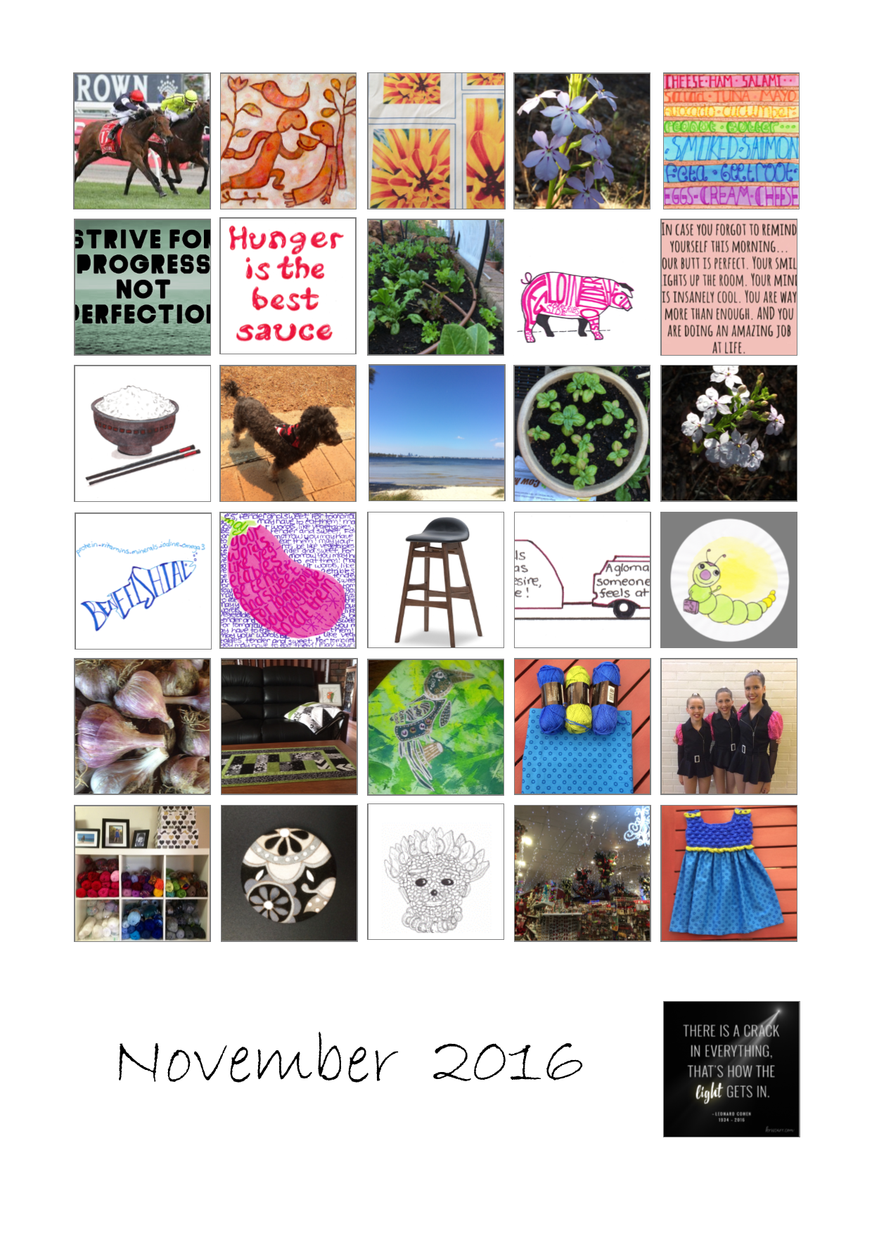 So, for completeness sake here is my visual diary collage for November 2016. I also like to finish in good time but…