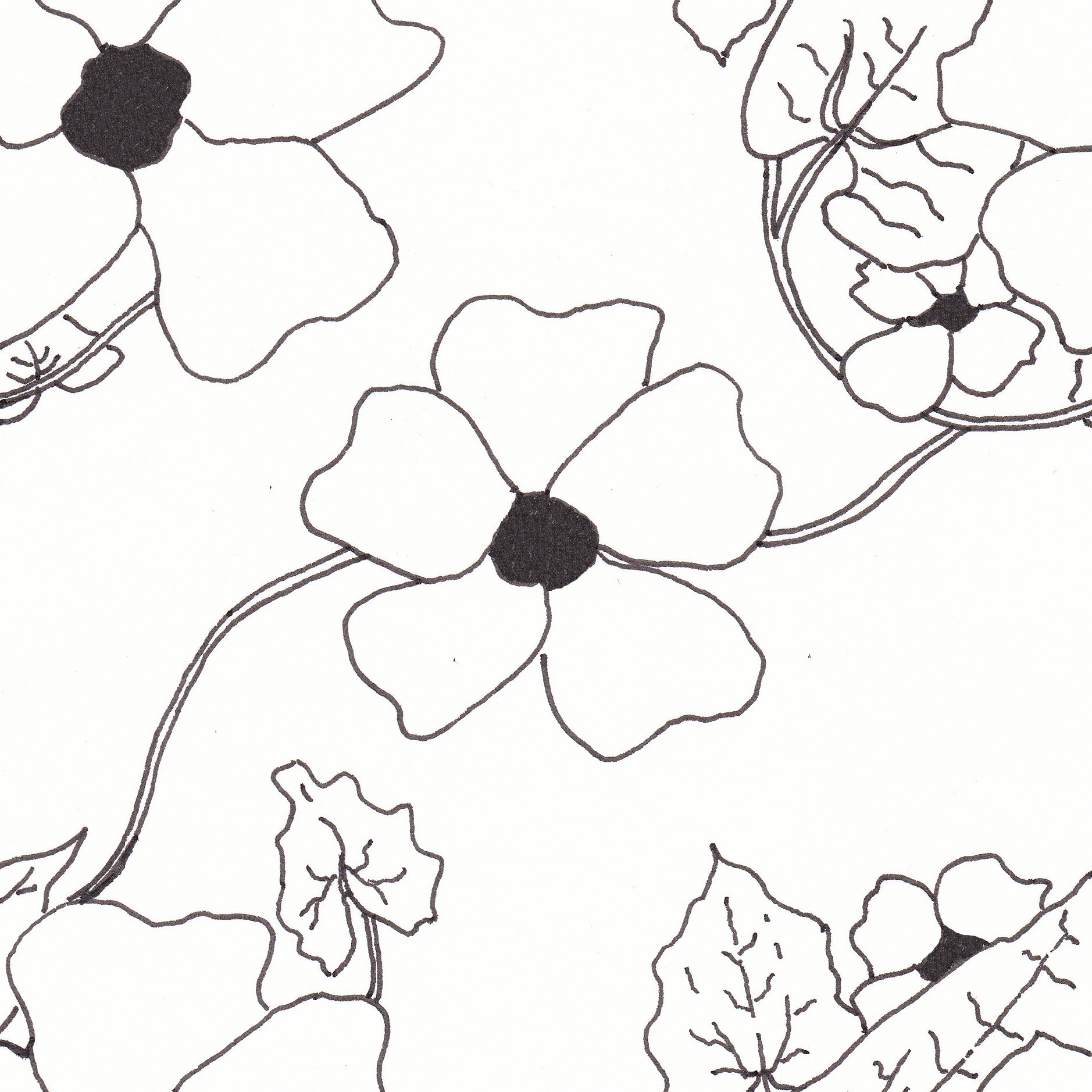 I decided this repeating perennial climbing plant was a suitable subject for my first ever attempt to create a repeatable pattern.  I started with this  ink drawing: