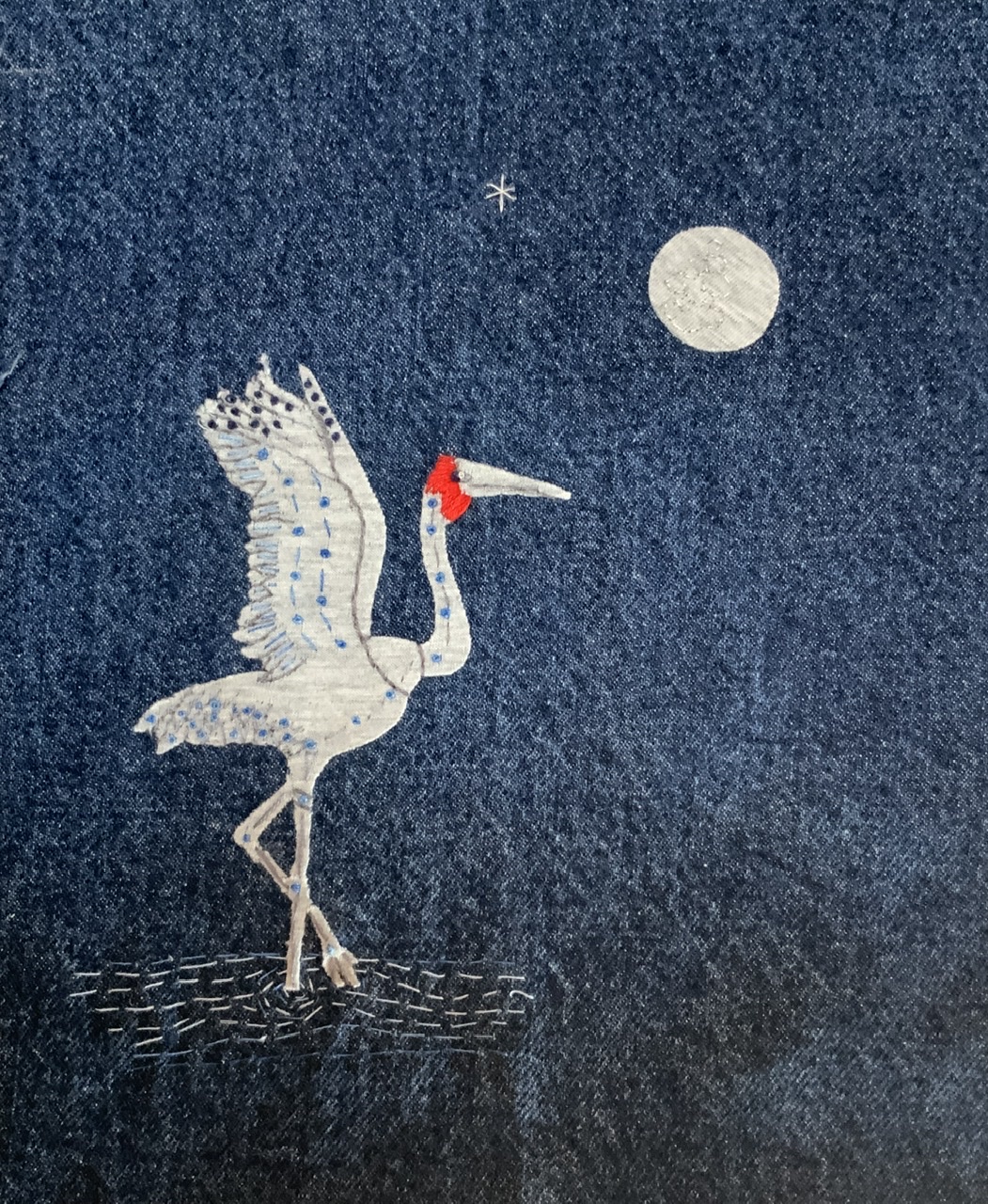 Our long stay in the Kimberley area of Western Australia inspired me to stitch a Brolga, whilst remembering lovely evenings watching the moon rise over Roebuck Bay.