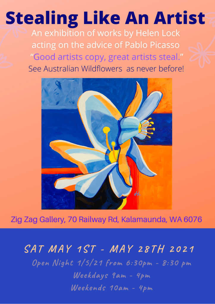 SAVE A DATE! 1st May my first (!) art exhibition opens at Zig Zag Gallery, Kalamunda, WA. It runs until the 28th.